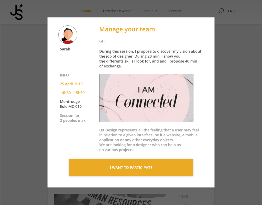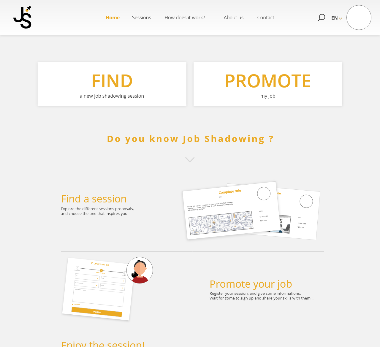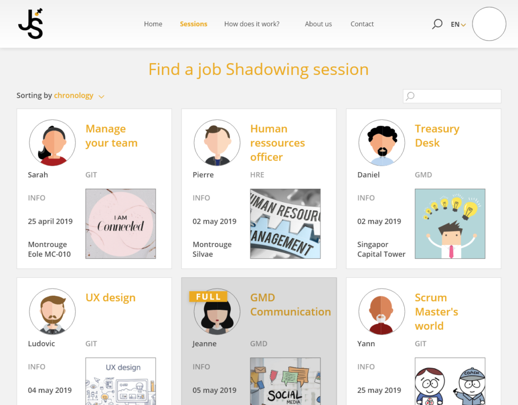 Création des maquettes d’un site. Projet Job Shadowing, un «échange» qui permet à certains de faire connaître leurs métiers, à d’autres d’en découvrir de nouveaux.